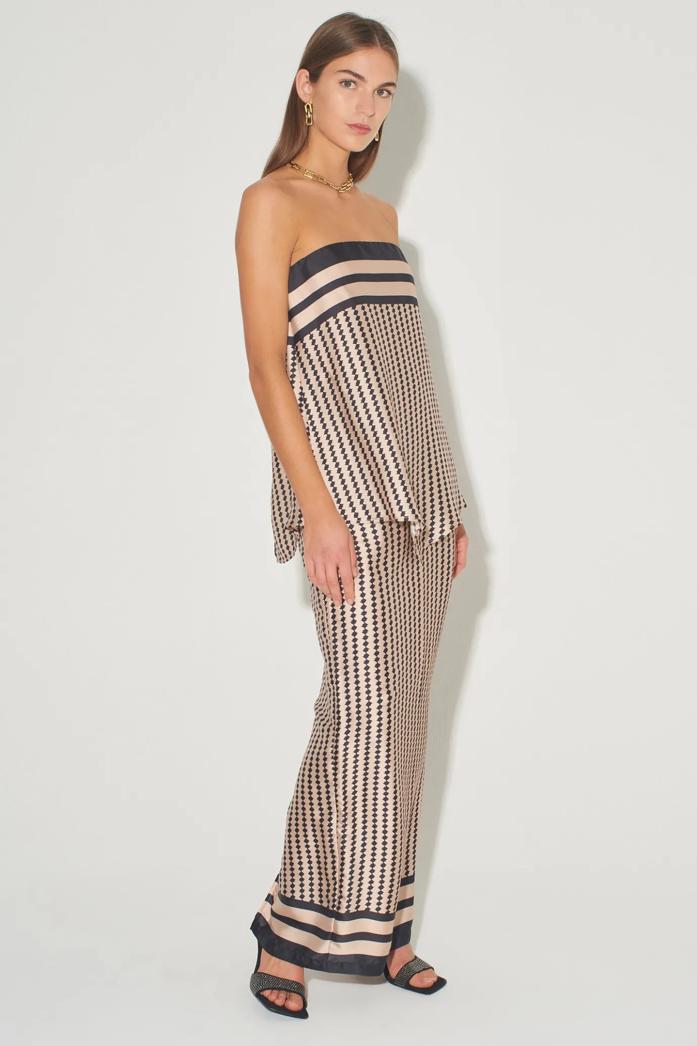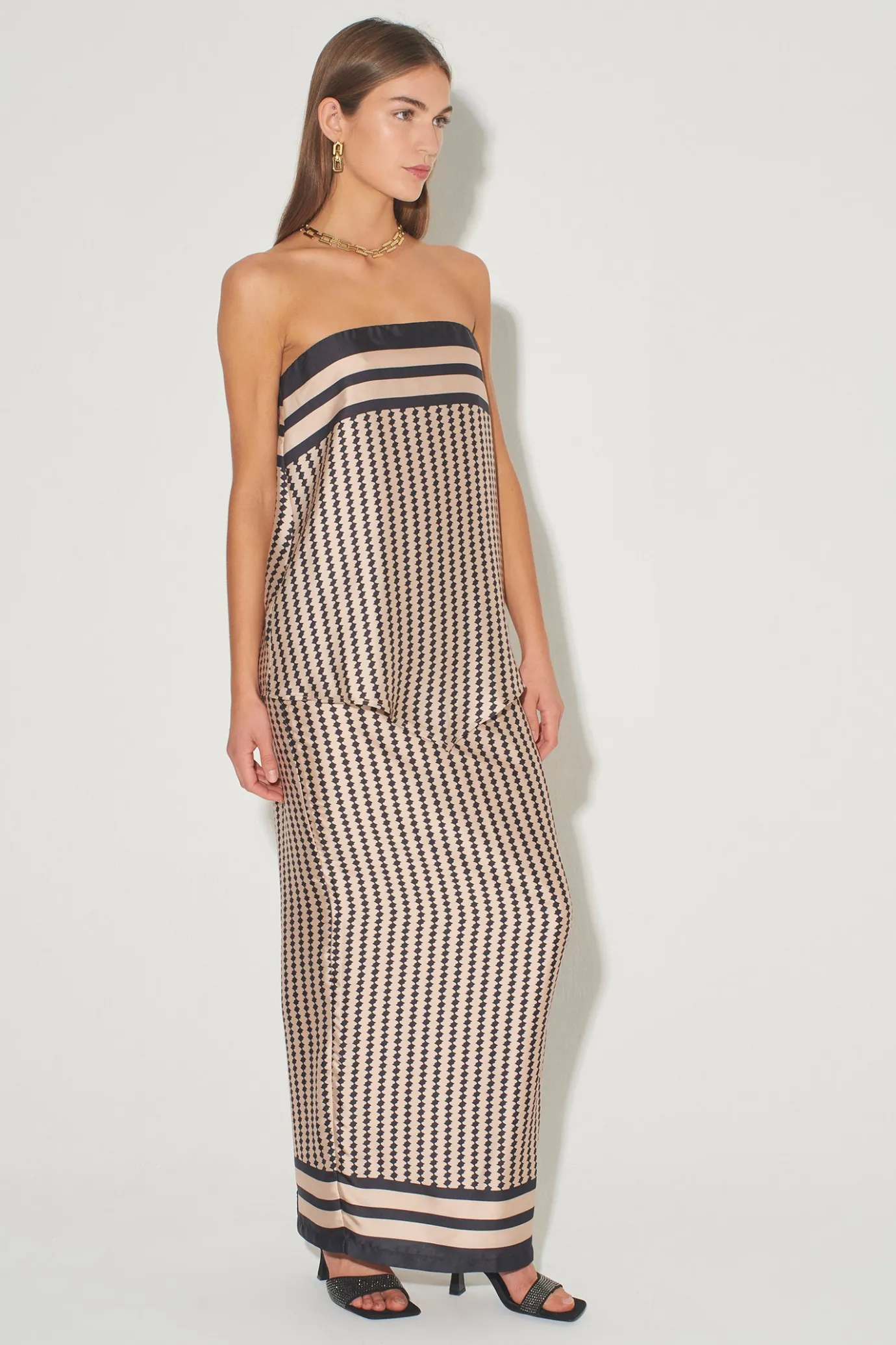 Relaxed FitBuilt In Bust PanelStrapless FitContrast Border PanelHook And Eye ClosureSplit Back HemAngular HemlineLength …