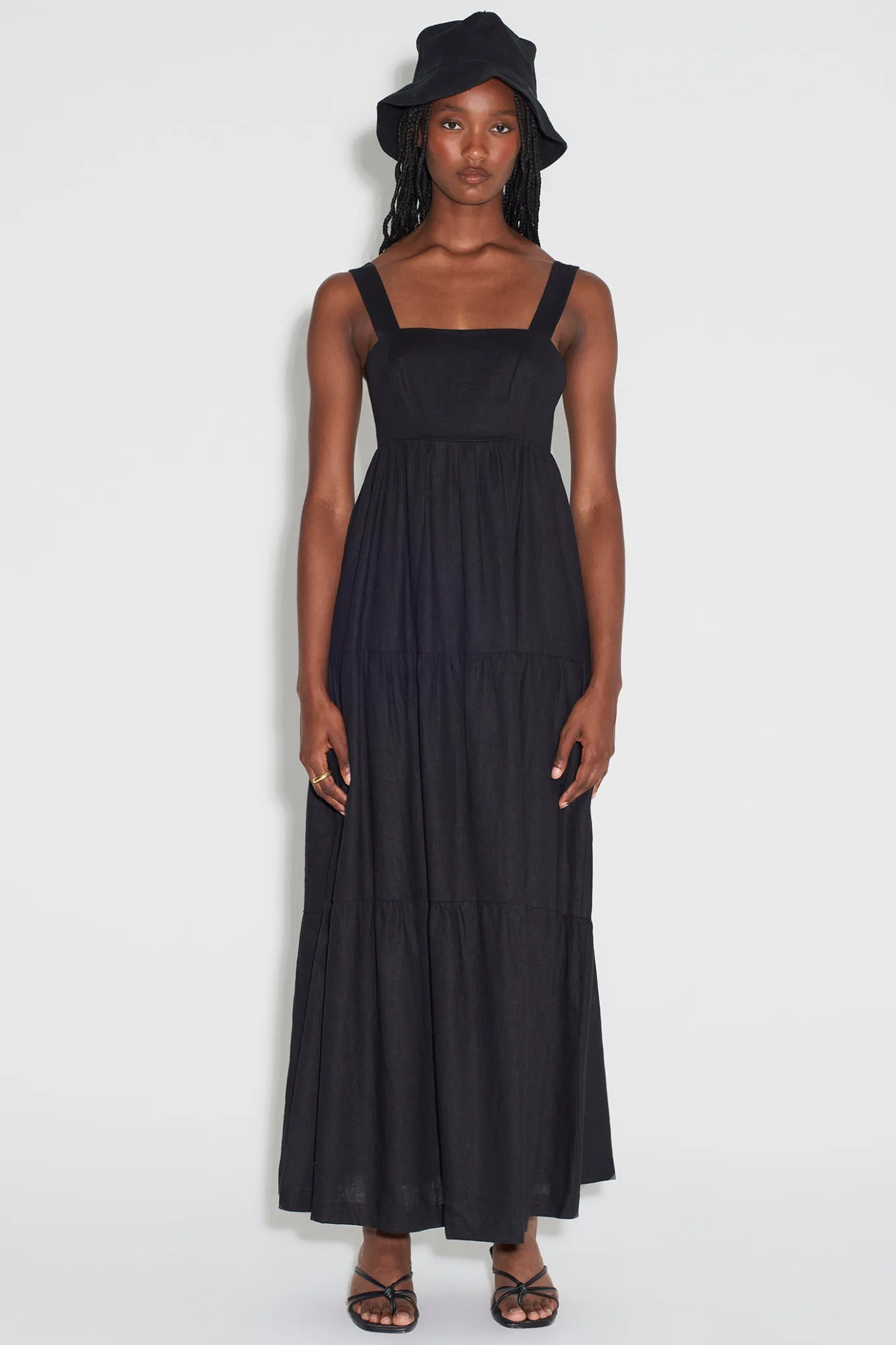 Midi DressFitted BodiceTiered SkirtThick Straps And Back TiesOpen BackFully LinedSide Seam PocketsLength Of Body From Ce…