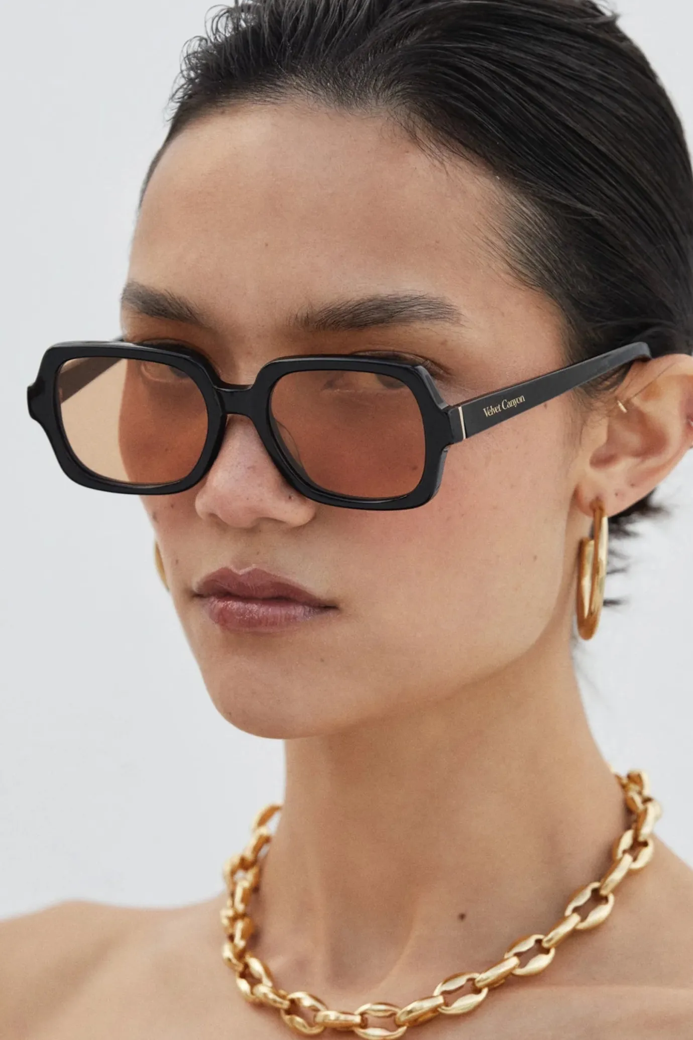 - Velvet Canyon Gold Toned Logo On Temple