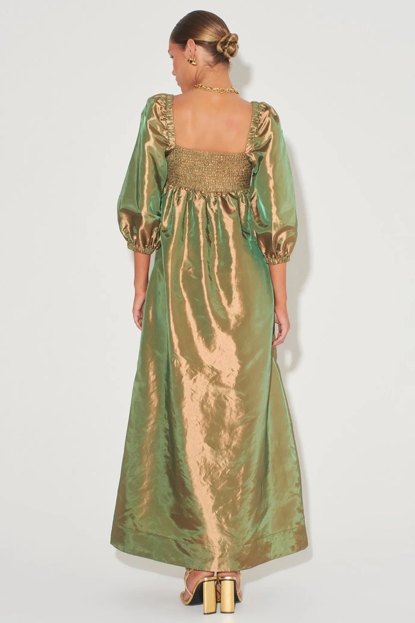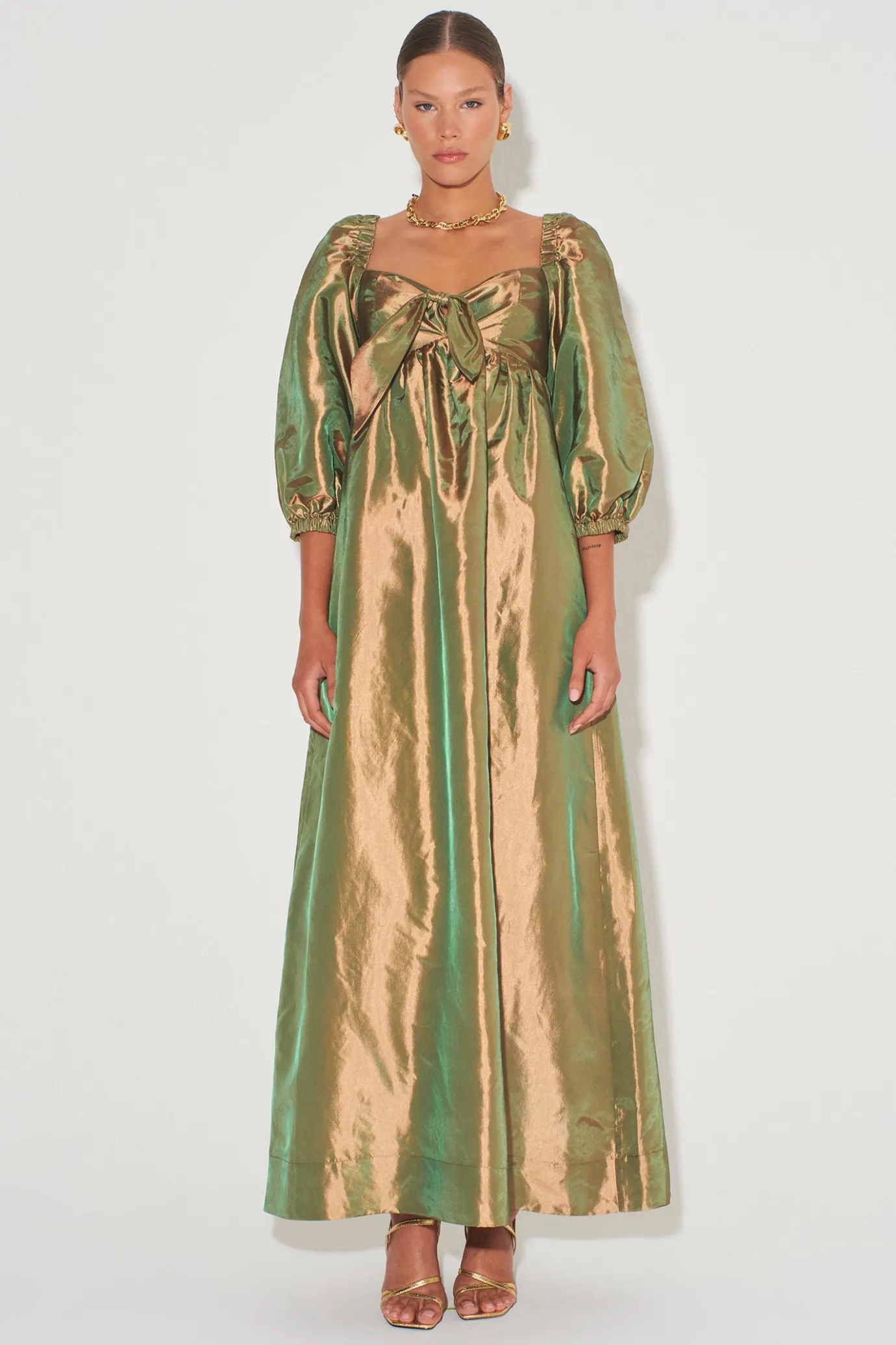 Maxi Dress With Empire, Under Bust SeamFitted Bust Panels With Adjustable Front TieBack Bodice Is Shirred For More Flexi…