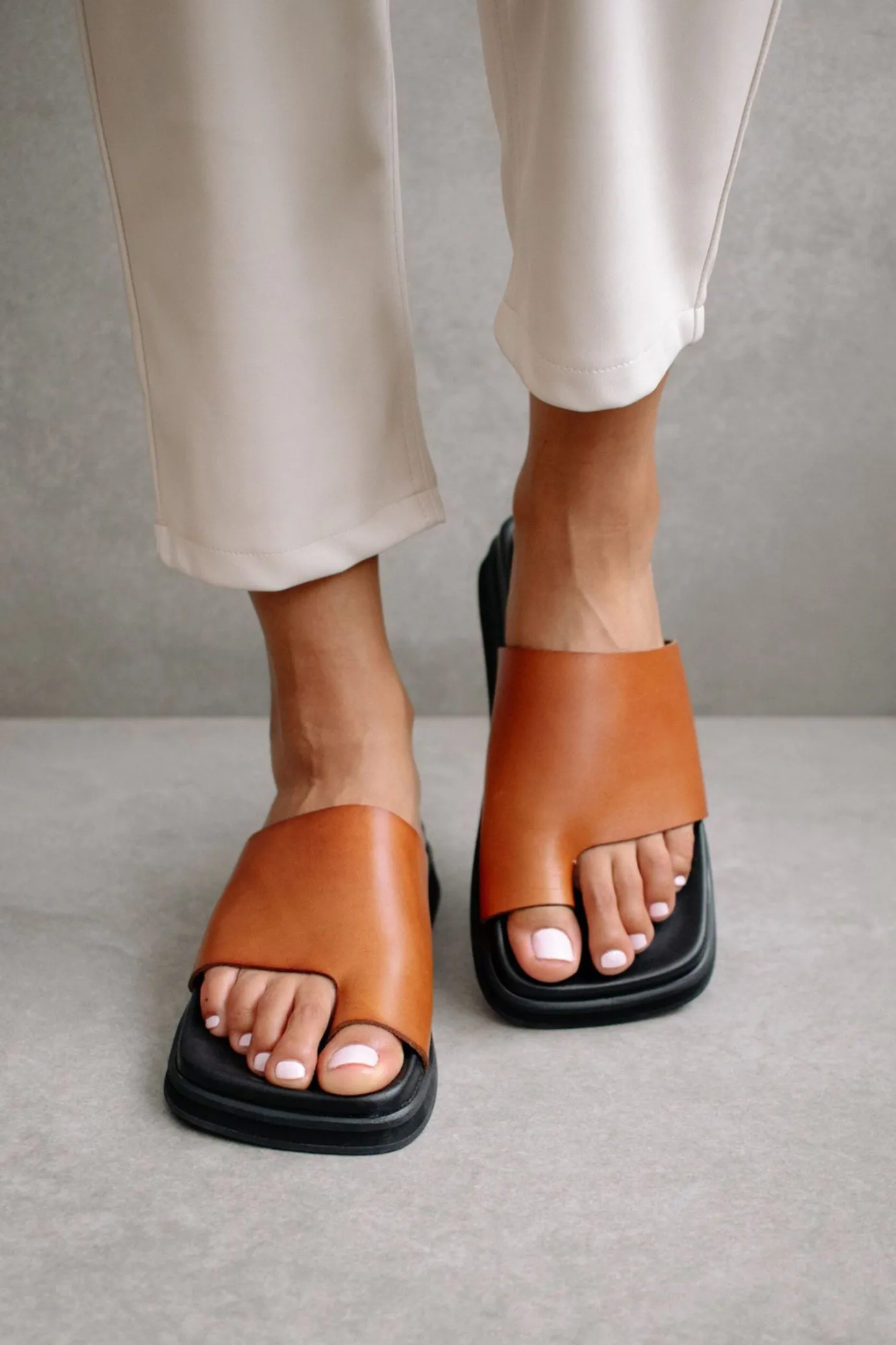 Hansen & Gretel Alohas Toe Ring Flop Slide Tan Discount