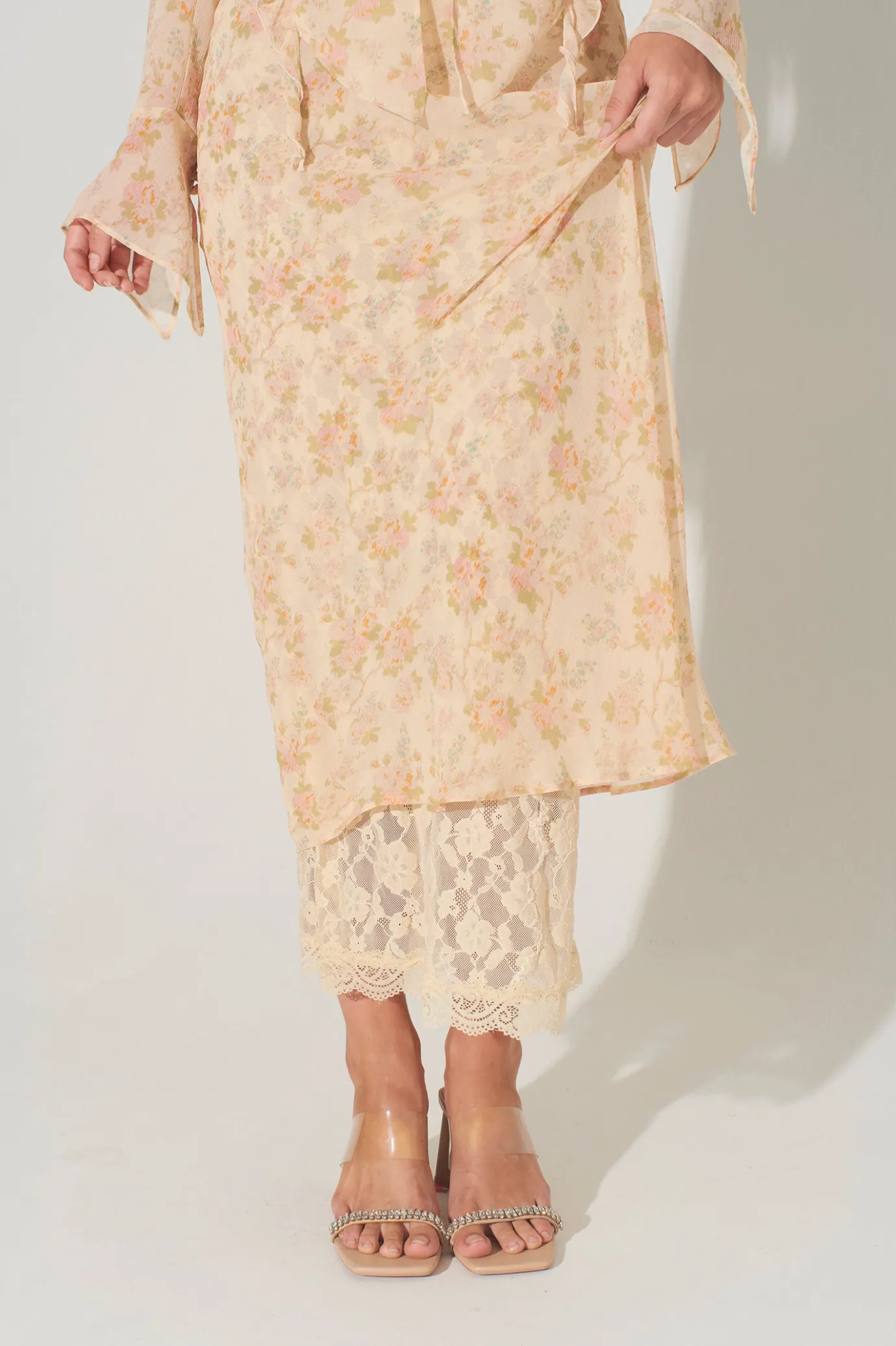 Bias Cut Longline Midi SkirtPrinted Outer Layer And Lace Inner LayerSkirt Is Reversible, Depending On Desired Look Elast…