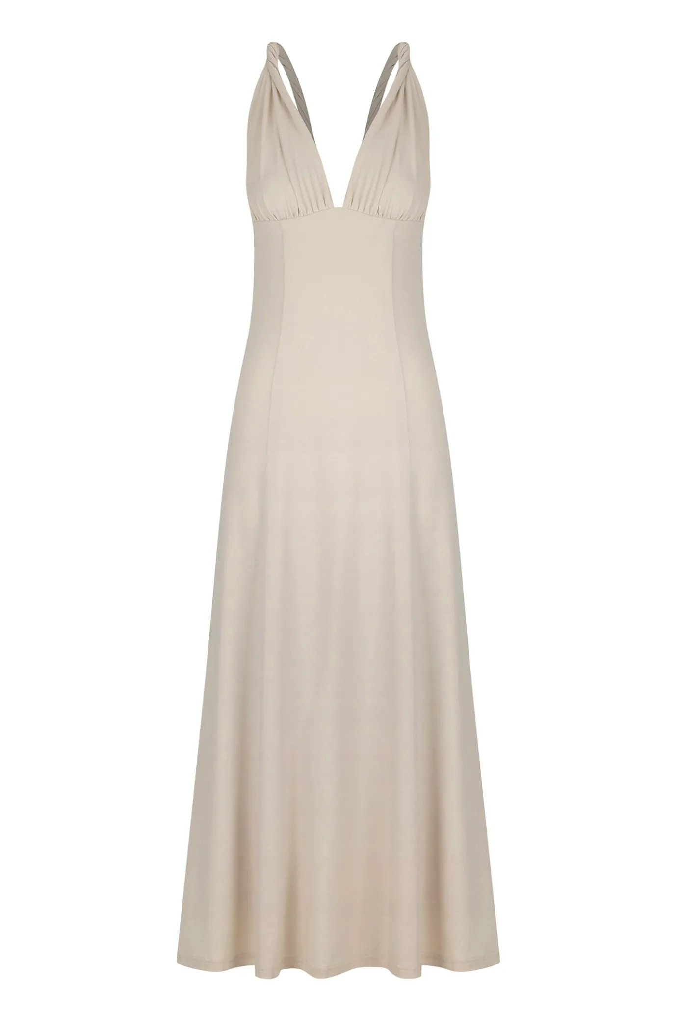 Fit And Flare Jersey DressLongline Midi LengthTwist Strap Design Ultra Low V-NecklineFitted Through Bust And Waist, Flut…