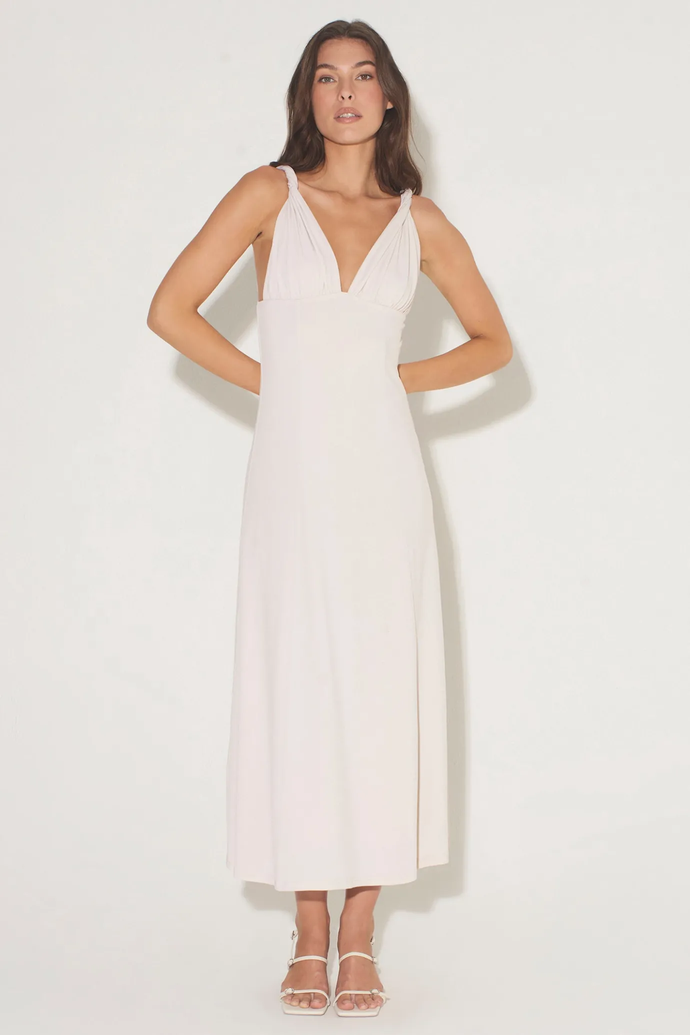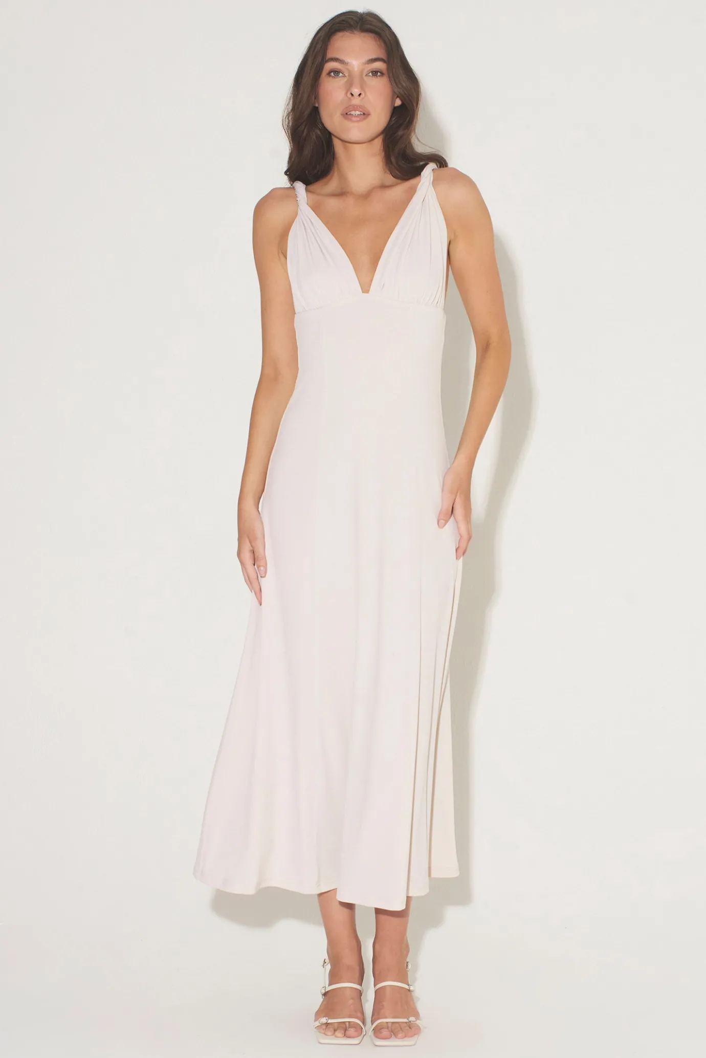 Hansen & Gretel Campari Jersey Midi Dress Ecru Flash Sale