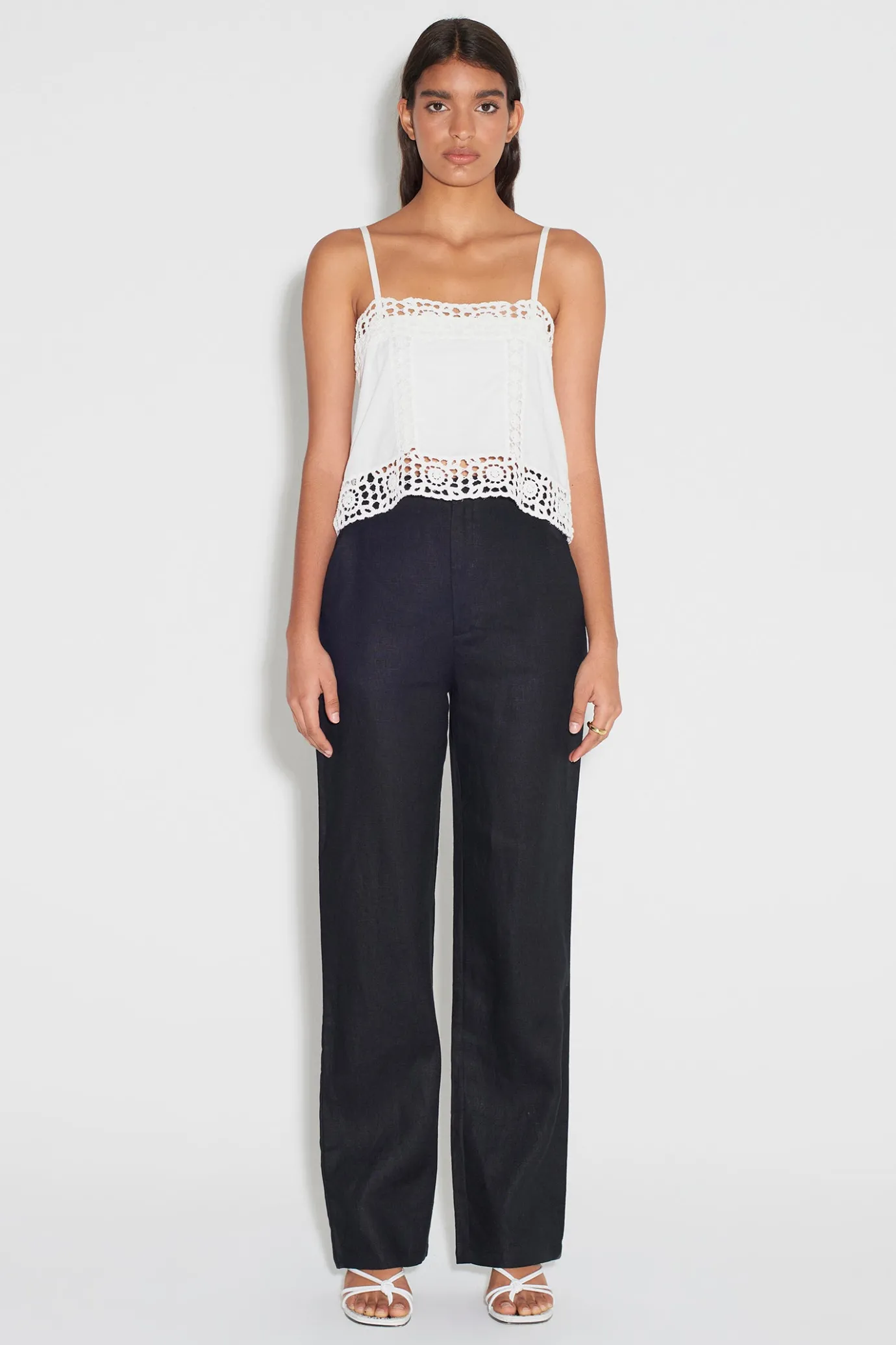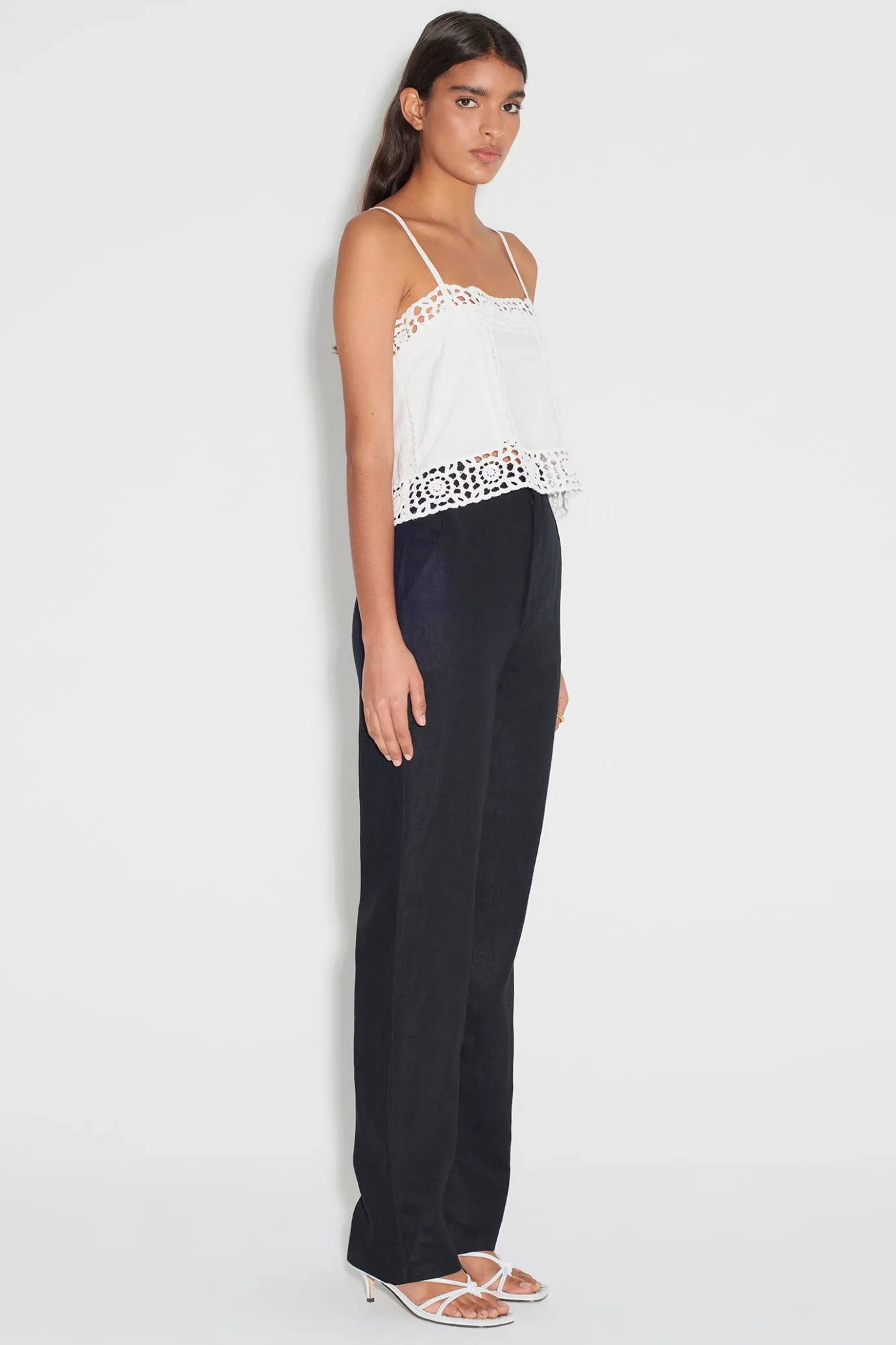 Cropped Singlet TopCrochet TrimHook And EyeInvisible ZipSpaghetti StrapsCotton LinedLength Of The Front Body On A Size S…