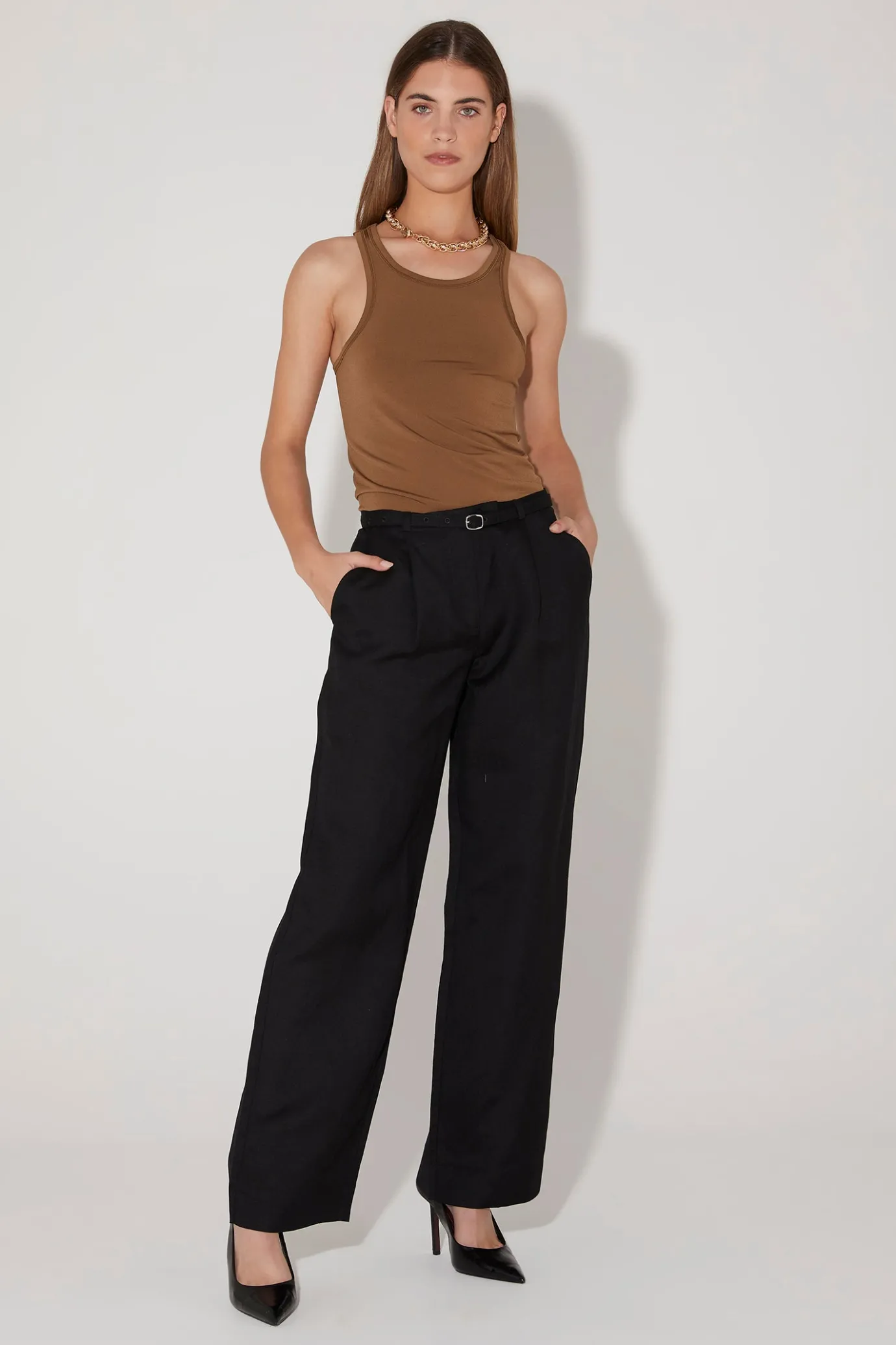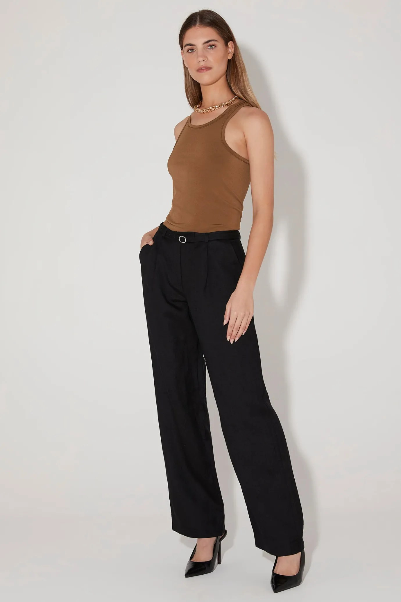 Hansen & Gretel Steph Fitted Tank Carob Brown Clearance